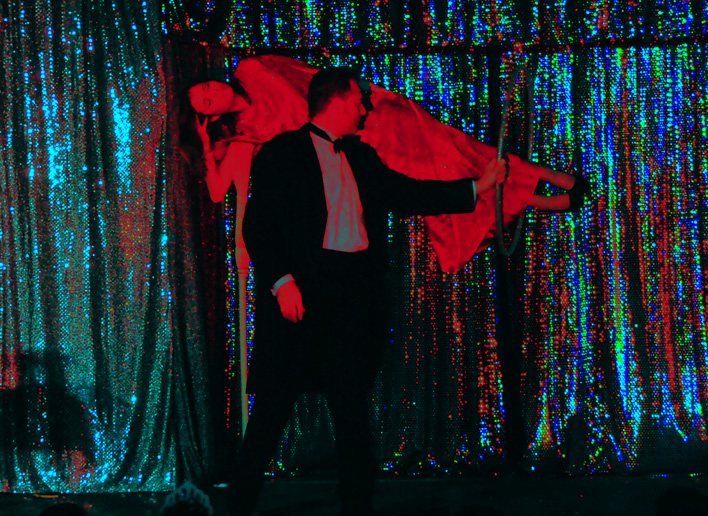 Spettacolo di varietà, animazione e magia, con numeri di trasformismo, ventriloquismo, grandi illusioni con coinvolgimento del pubblico.